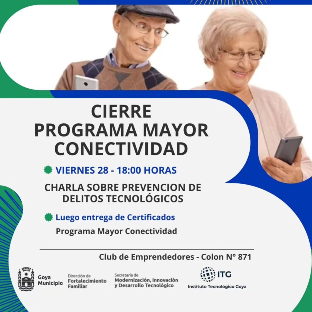 La Municipalidad de Goya, a través de la Secretaría de Modernización y la Dirección de Fortalecimiento Familiar, llevará a cabo el acto de finalización del programa «Mayor Conectividad”. El evento se realizará el próximo viernes 28 de noviembre a las 18:30 horas en el Club de Emprendedores Goya.