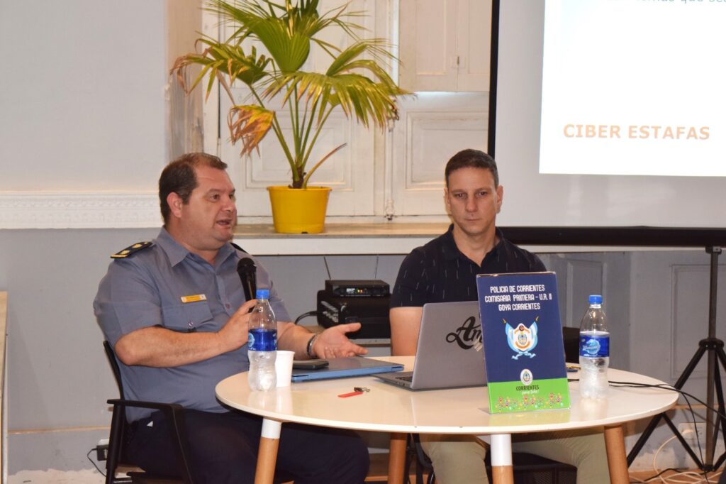 La jornada de clausura dio inicio con la charla informativa para evitar caer en estafas en el uso de los dispositivos móviles y la guía de procedimiento a cargo del titular de la Comisaria 1ª de Goya Comisario Matias Castillo y el Secretario del Ministerio Publico Fiscal Dr. Diego Joaquín Pinsker, quienes al término de la disertación recibieron como reconocimiento por su aporte certificados por parte de la Municipalidad de Goya