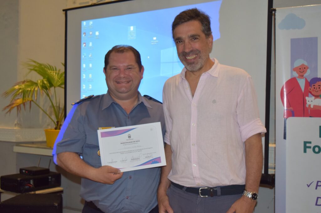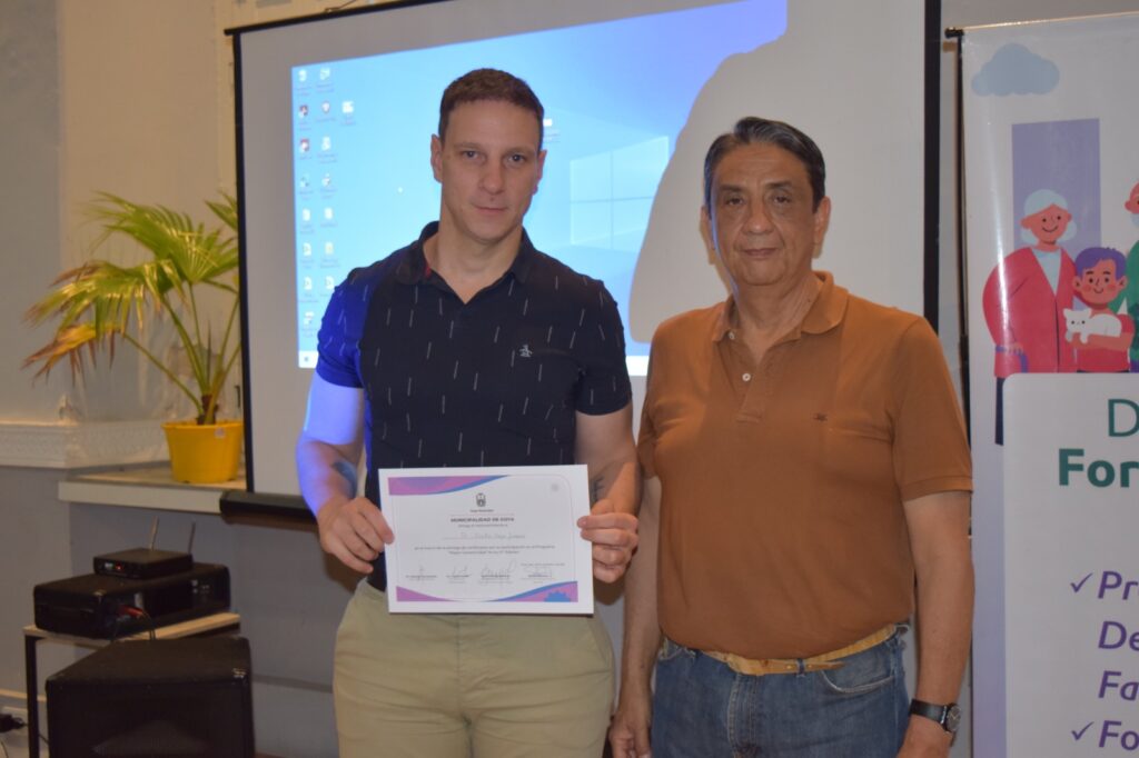 Tras lo cual los funcionarios municipales, los profesores y auxiliares acompañaron la entrega de los correspondientes certificados, con una mención especial a quien ha tenido asistencia perfecta Paulo Celes, del mismo modo se procedió a entregar reconocimientos a los profesores, colaboradores y auxiliares del programa: Félix Valenzuela; Alberto Omar Gomez; Pamela Aguilar; Sonia Ayala; Luiz Pitton Canaparro; Antonella Soledad Quirico; José Rolando Ramirez; Martin Fernández; Maira Gauna y Dahiana Díaz.