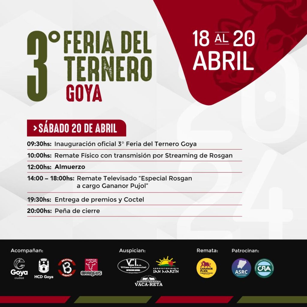 El ruralista, anticipó: “El Sábado inauguración de la 3ª Feria del Ternero a las 9 horas para seguir con el remate físico de los lotes participantes, estamos contentos por el número de hacienda más de 400 cabezas, con buen número de productores, por eso se busca hacer la feria con lotes no más de 10 cabeza de ganado para generar una participación más equitativa.” Para concluir el presidente de la Sociedad Rural, indicó: “Finalizado el remate físico, desde las 14 y 30 un remate televisado a cargo de Gaganor Pujol, por Canal Rural, contentos más de 8 mil cabezas consignadas algo significativo que se dará desde nuestro predio, vale recordar que nuestro remate físico y la jura serán transmitidas por el streaming, para la transmisión en vivo de estas actividades.” El final de la 3ª Expo ternero concluirá el sábado con un festival artístico musical.