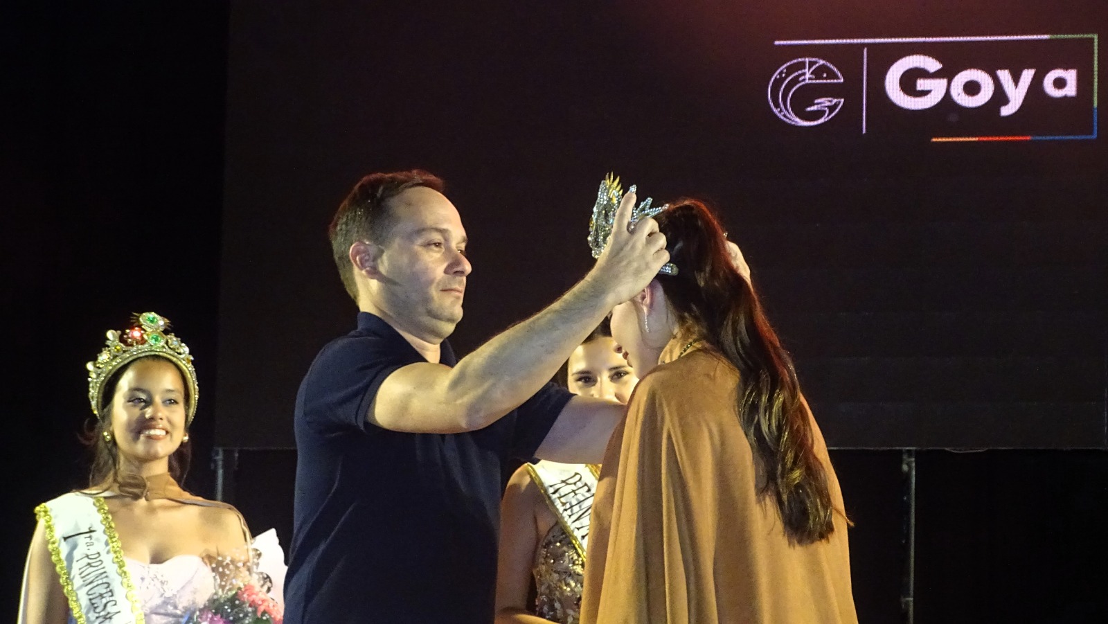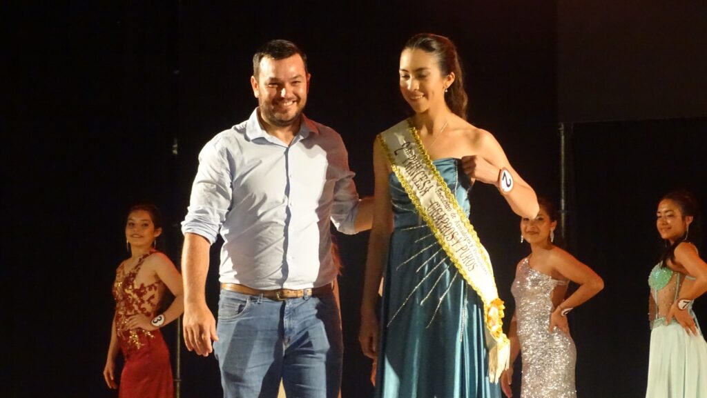 1ª Princesa Oriana Pereyra quien recibió la banda de manos del Director de Juventud Gastón Espinosa, la Capa coloco la Directora de Recursos Naturales y Medio Ambiente Adriana Gomez Arizaga, la Corono coloco la Secretaria de Educación Sonia Espina, los correspondientes presentes y obsequios el Concejal Jorge Zorzoli y la Directora de Promoción Social Mercedes Pintos.