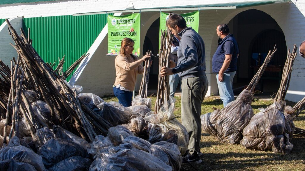 El pasado jueves 15 de agosto tuvo lugar una nueva entrega de plantines a productores que se encuentran dentro del Plan Pecan que viene desarrollando la Provincia a través de la Secretaría de Producción del Ministerio con el apoyo del Gobernador Gustavo Valdés.