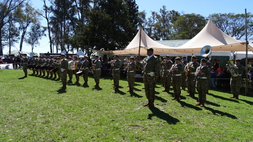 Una vez concluida la presentación de los campeones de la muestra, la Banda Militar “Puerto Argentino” bajo la Dirección de su Maestro de Banda Teniente 1º Alberto Esteban Córdoba y el Segundo Maestro de Banda Suboficial Mayor Ariel Callejas, interpreto los sones de la canción patria, el Himno Nacional Argentino, para el retiro de la Banda Militar lo hizo ejecutando marchas clásicas y ritmos populares.