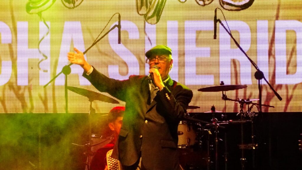 Al caer la noche, el histórico Coliseo de la JJ Rolón se transformó en un gran anfiteatro chamamecero. A las 22:30, las luces se atenuaron y Mate Acosta junto a Rogelio “Negro” Chiappe irrumpieron en el escenario central, montado sobre el césped. Con acordeones, guitarras y contrabajos, dieron inicio a un recorrido por los himnos que forjaron la leyenda de AMBOÉ: desde los primeros temas de su juventud hasta los arreglos más recientes.