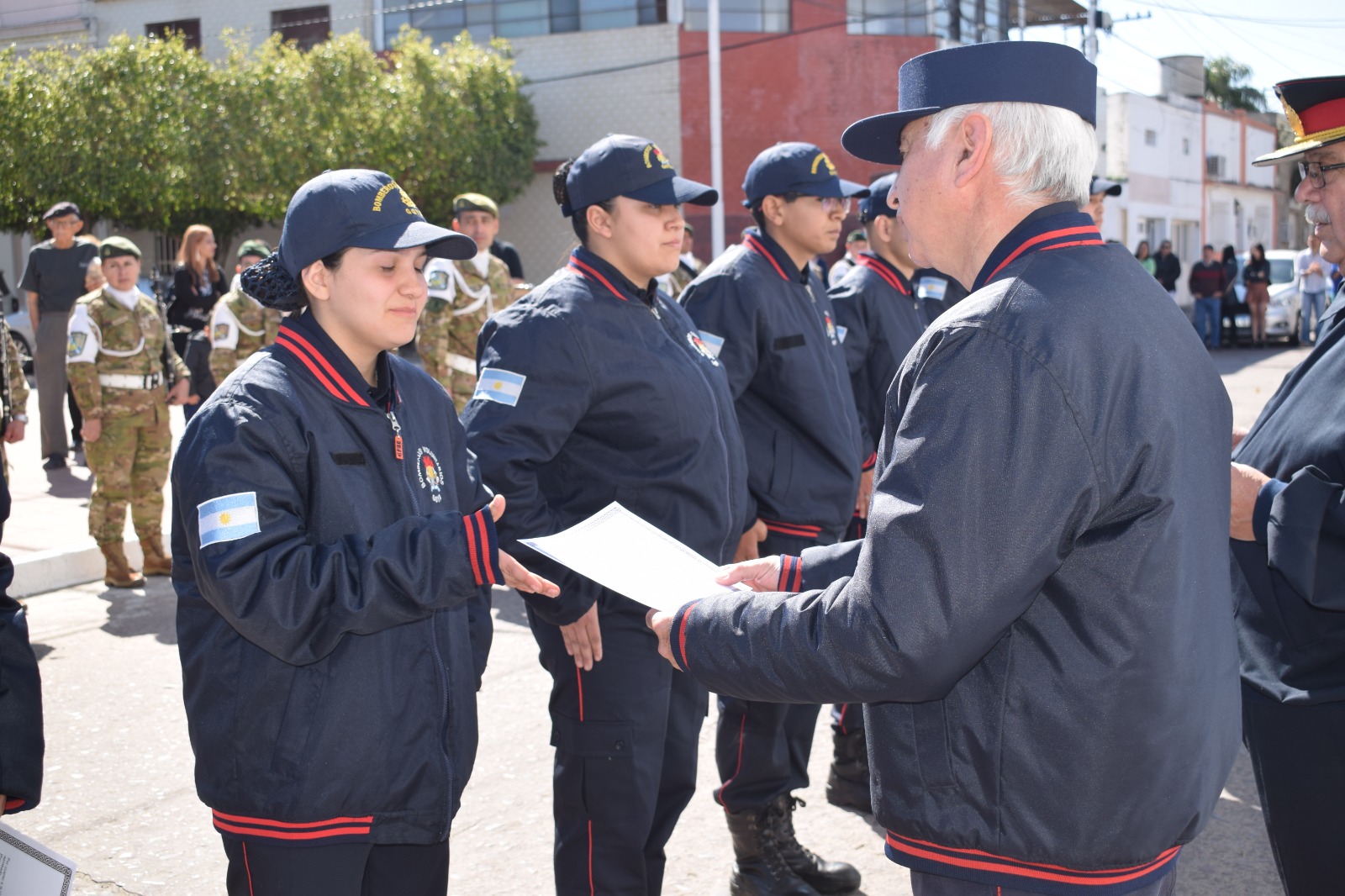 Durante la ceremonia, también se llevó a cabo la entrega de certificados de ascenso a los bomberos que superaron los exámenes correspondientes. Los ascendidos fueron: Milagros Itatí Acevedo, Antonia Luján Ibarrola, Lorenzo Leonel Sandoval, Joaquín Ramón Zamudio, Juan Manuel Zarantonelli, Araceli Andrea Perizzotti y Rodrigo Nahuel Monje, quienes recibieron sus distinciones con orgullo. Asimismo, se autorizó a los aspirantes solicitados por la Presidente de la Asociación Civil Bomberos Voluntarios de Gobernador Martínez, doctora Mariela Beatriz Pared que, tras completar su formación teórico-práctica, se incorporaron oficialmente al Cuerpo de Bomberos Voluntarios.