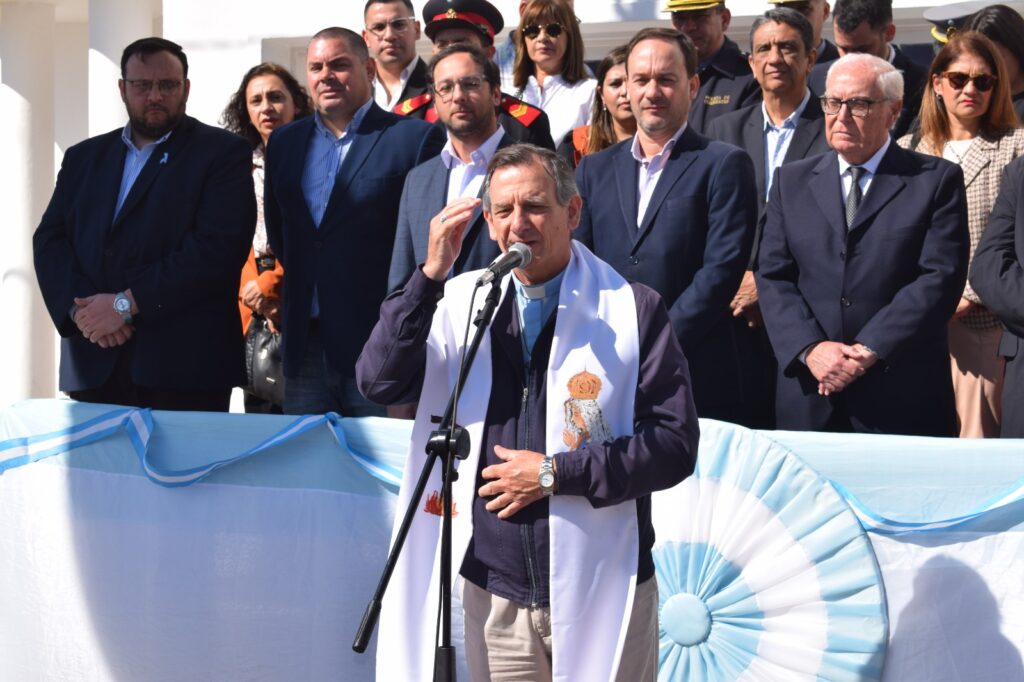 Monseñor Adolfo Canecín, en su invocación religiosa, resaltó la importancia de la memoria y la gratitud hacia quienes fundaron esta institución en 1944. “El pai Julián Zini decía que es linda la gente que tiene memoria, porque seguro que tiene esperanza también. Hoy estamos recordando a los fundadores de los Bomberos Voluntarios de Goya, una institución que a lo largo de estos 80 años ha arriesgado vidas y salud para el bienestar de nuestra comunidad”, expresó. También destacó la evolución y el crecimiento de la institución, siempre al servicio del bien común y siguiendo el mandato de Cristo de servir a los demás.