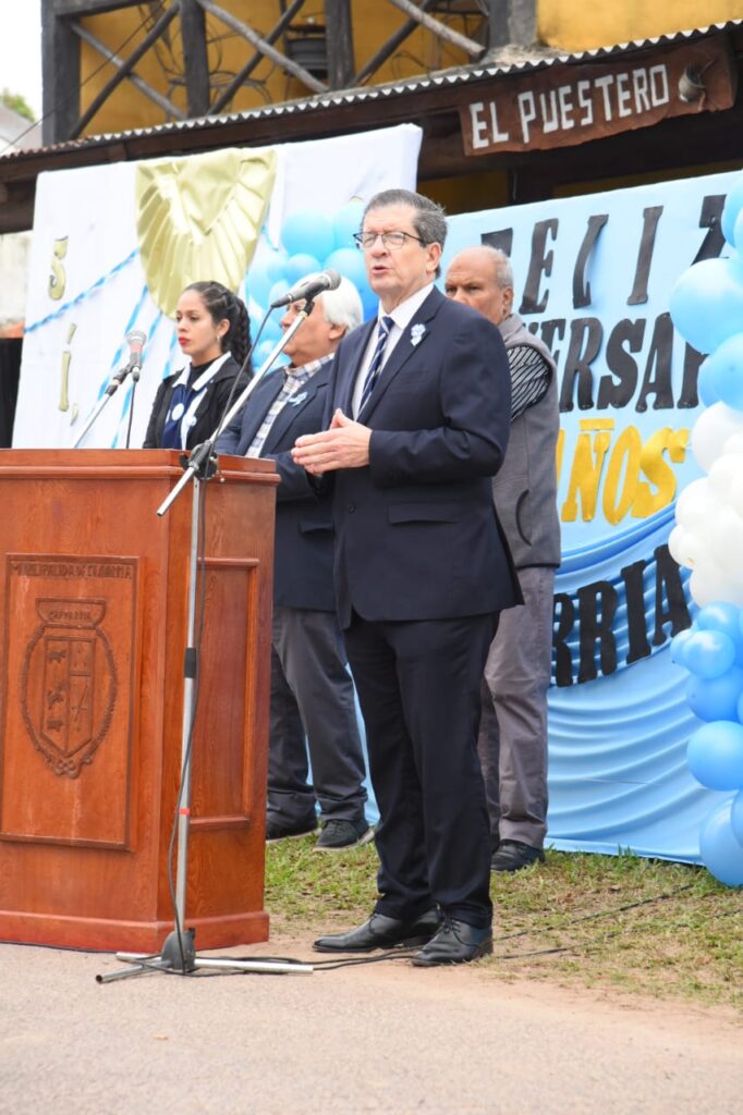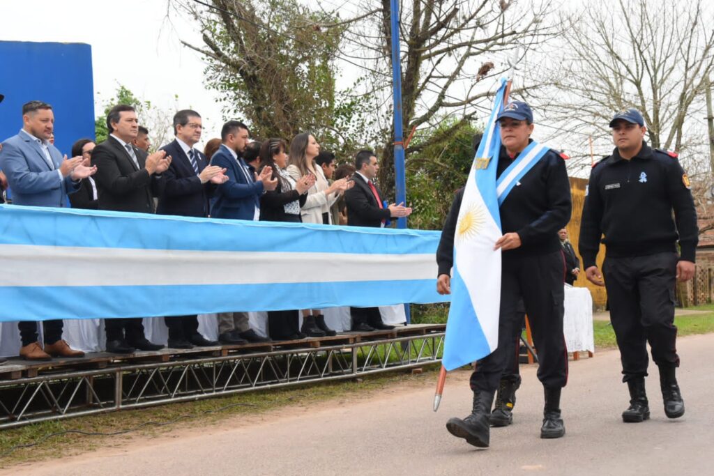 Por otra parte, destacó: “Hoy también rendimos homenaje a nuestra bandera, nuestra enseña patria, y posiblemente al prócer más abnegado de nuestra historia, don Manuel Belgrano, un abogado porteño que dejó las comodidades de ese tiempo de la Ciudad de Buenos Aires para vestir un uniforme y salir a defender los ideales de libertad y de independencia. Y uno de los primeros lugares que recorrió fue esta zona, cuando en su trayectoria hacia el Paraguay, para llevar los ideales de la libertad al pueblo hermano, cruzó por acá no en ánimo de conquista, sino con el espíritu de transmitir lo que eran los más grandes valores de Mayo. Y Paraguay fue uno de los primeros países en independizarse en América del Sur. Entonces, qué más justo homenaje que hoy se refleje en los niños, en la juventud, en eso que tanto creyó Belgrano”.