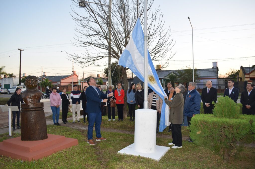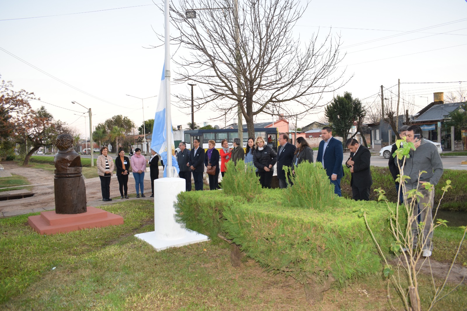 Del acto desarrollado a las 8 horas, en la plaza del barrio junto al Secretario de Gobierno formaron parte el presidente de la Comisión Barrial José Oscar López, la presidente de la Biblioteca Popular “Bibliotecas del Sur” Teresita Villordo, los Secretarios de Desarrollo Humano Julio Canteros, de Hacienda Contador Pablo Giuliani; la Secretaria de Educación Sonia Espina; la presidente de la Asociación Cultural Sanmartiniana Goya Virginia Coria, la Directora de la Mujer Agostina Montenegro; los Directores de Cultura Manuel Zampar; de Consejos Vecinales José Casco, el Vicepresidente 1º del HCD Concejal Antonio Mazzaro, miembros de las asociaciones culturales y vecinos.