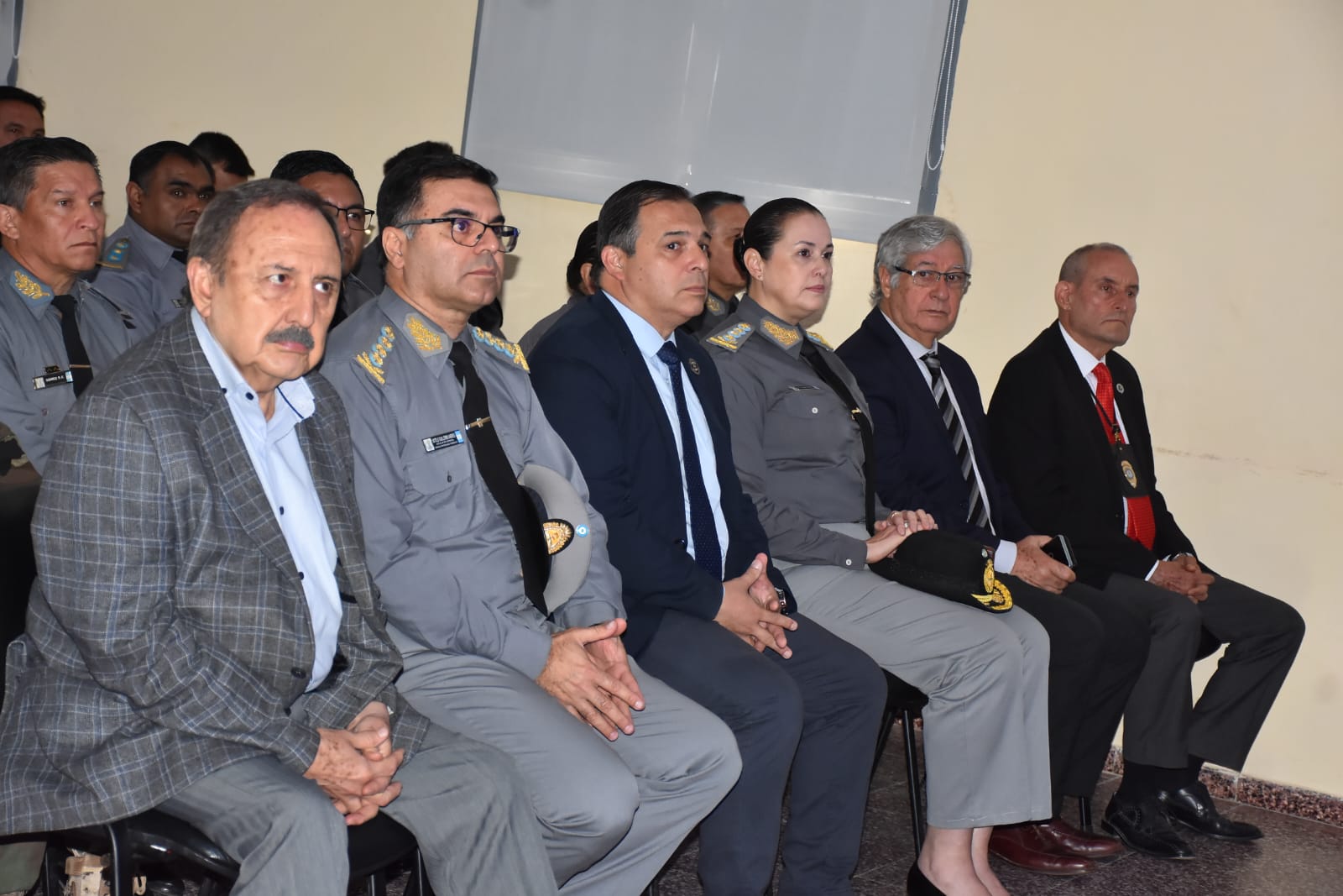 El acto contó con la presencia del subsecretario de Gobierno, Luis Rodolfo Bravo; el subsecretario de Seguridad Ciudadana, Oscar Martínez; y el subsecretario de Derechos Humanos, Manuel Cuevas. Acompañaron también el jefe del Servicio Penitenciario, inspector General, Guillermo Andrés Sotelo; la subjefe, inspectora General, Natalia Evangelina Aguirre Wirz; ex jefes de la institución, directores de establecimientos penitenciarios, cadetes y más de 200 integrantes del cuerpo penitenciario.