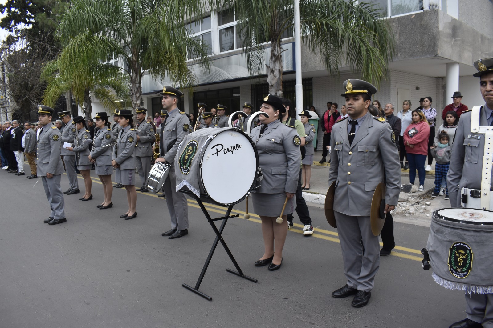 Para dar por concluido se dispuso del esquema correspondiente para que alumnos, fuerzas de seguridad y veteranos de Malvinas realizaran el Pasaje de Honor acompañados con los sones de la Banda de Música del Servicio Penitenciario Provincial