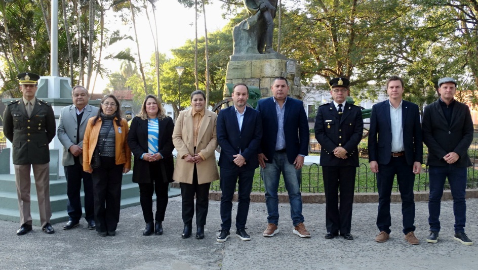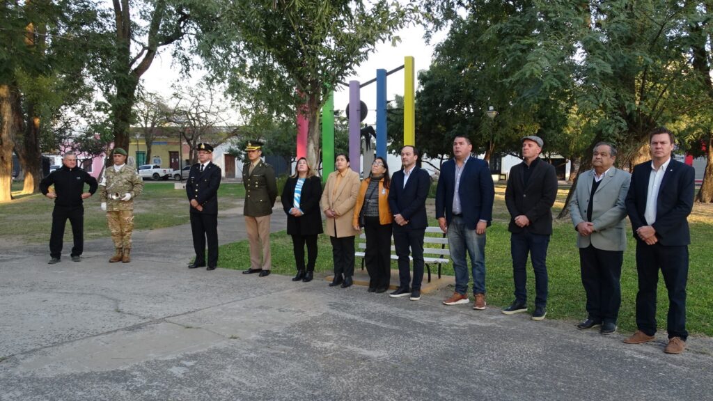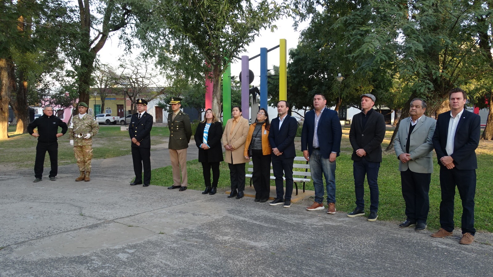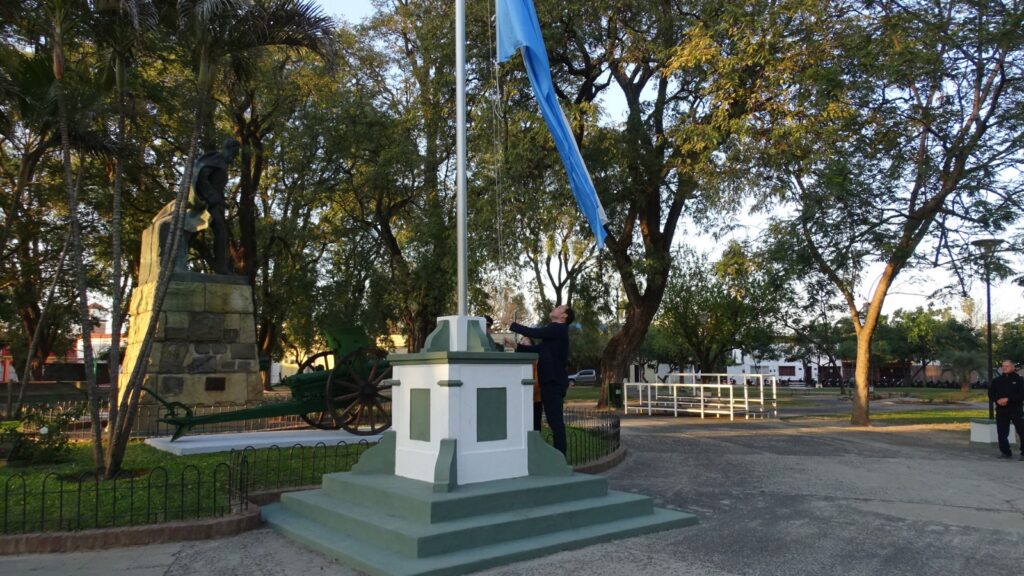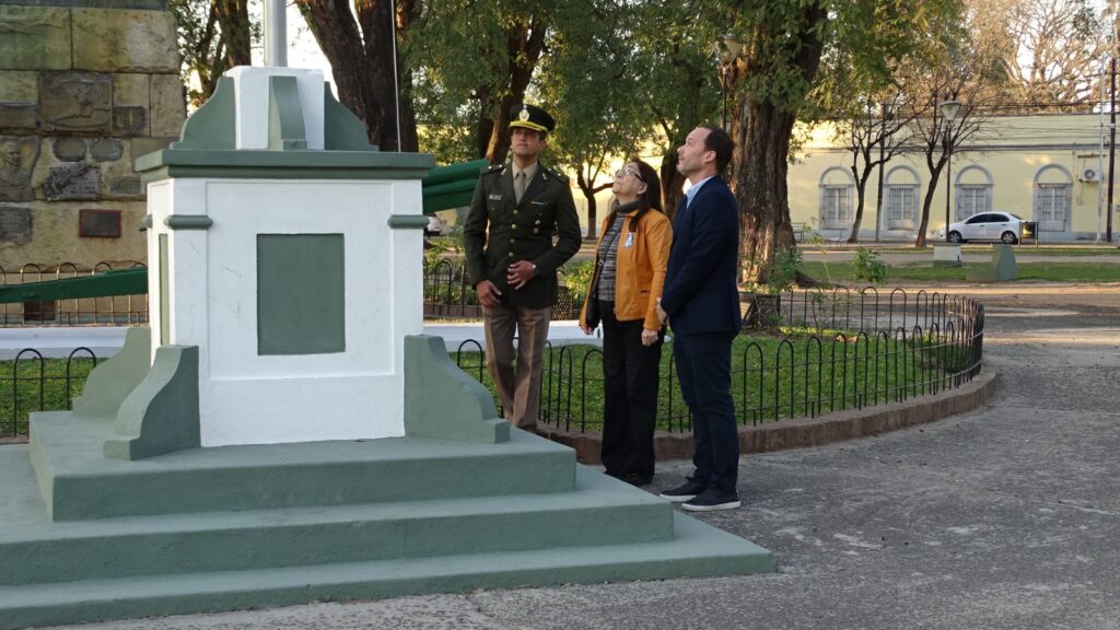 Mariano Hormaechea, junto al segundo Jefe del Batallón de Ingenieros de Monte 12, Mayor Santiago Avila y la Profesora Mariza Baez en representación de la institución Sanmartiniana se encargaron, en la Plaza que perpetúa la memoria delGran Capitán, al izamiento de nuestra Bandera Nacional.