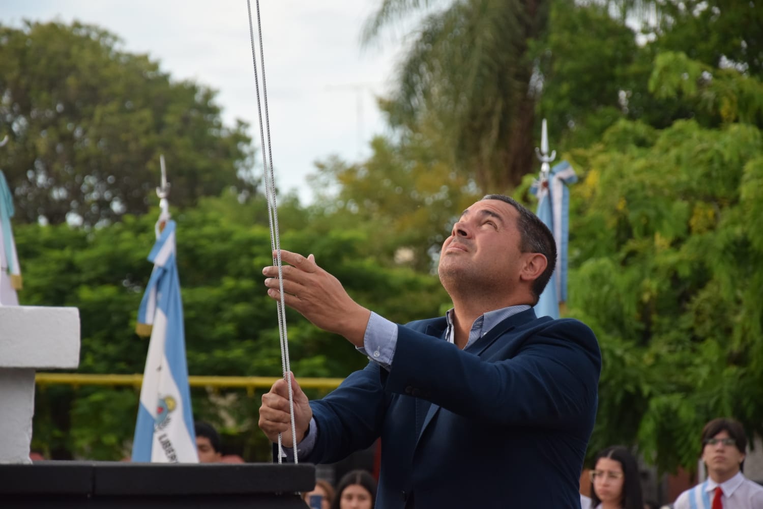 “La bandera argentina nos abraza y abraza, a quienes quieran habitar nuestro suelo respetando nuestras costumbres, tradiciones, religión y símbolos patrios, porque, en definitiva, la unidad es superior a la parte. El primer izamiento de la bandera evoca el significado de identidad, que nos impulsa a amar, servir y trabajar por la grandeza de la nación. Que la bandera celeste y blanca esté enarbolada en espacios públicos y particulares forma parte de la expresión del deseo de libertad que no debemos olvidar ante aquello externo que pretenda la suplantación del ser y la identidad argentina, que aún en nuestros días se halla en construcción. Expresa, además, de manera simbólica nuestra libertad y propiedad, la cual nuestros próceres supieron legarnos, sosteniendo los lemas de patria libre, tierra fértil, visión clara, alma sana y mente despejada”.