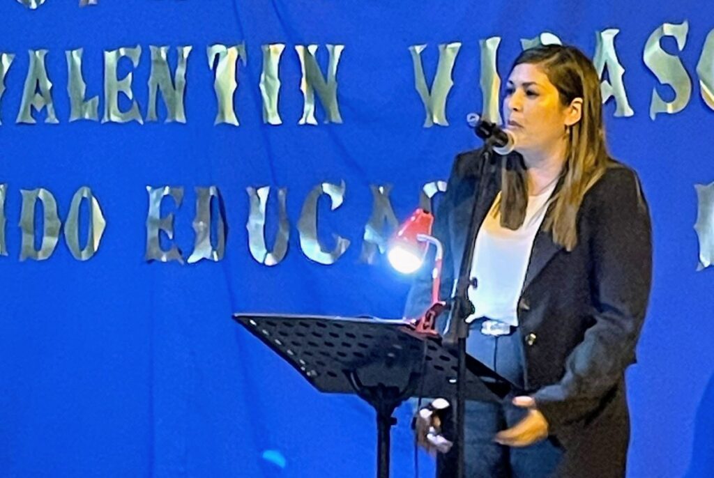 “He venido muchas veces a esta Escuela desde distintos roles, -recordó Sonia Espina- conozco de cerca el crecimiento que ha tenido, felicito a Estela (Juri), a todo el equipo de conducción, a los profesores y alumnos que hacen al crecimiento de esta comunidad educativa y la han convertido en un ejemplo para nuestra ciudad.”