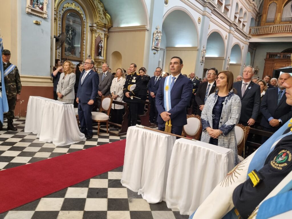 Dentro de los actos oficiales, también se celebró el Solemne Te Deum, presidido por el Arzobispo, Monseñor José Adolfo Larregain con la oración a Dios por la Patria, como es tradicional, en la Iglesia de Nuestra Señora de la Merced.