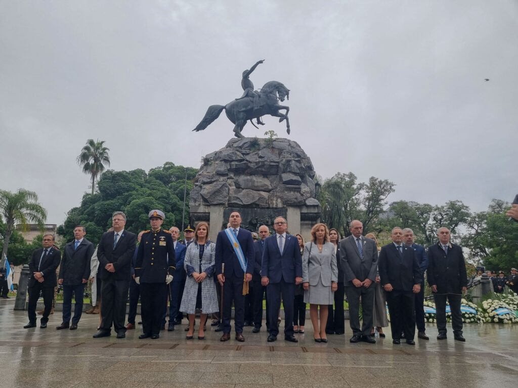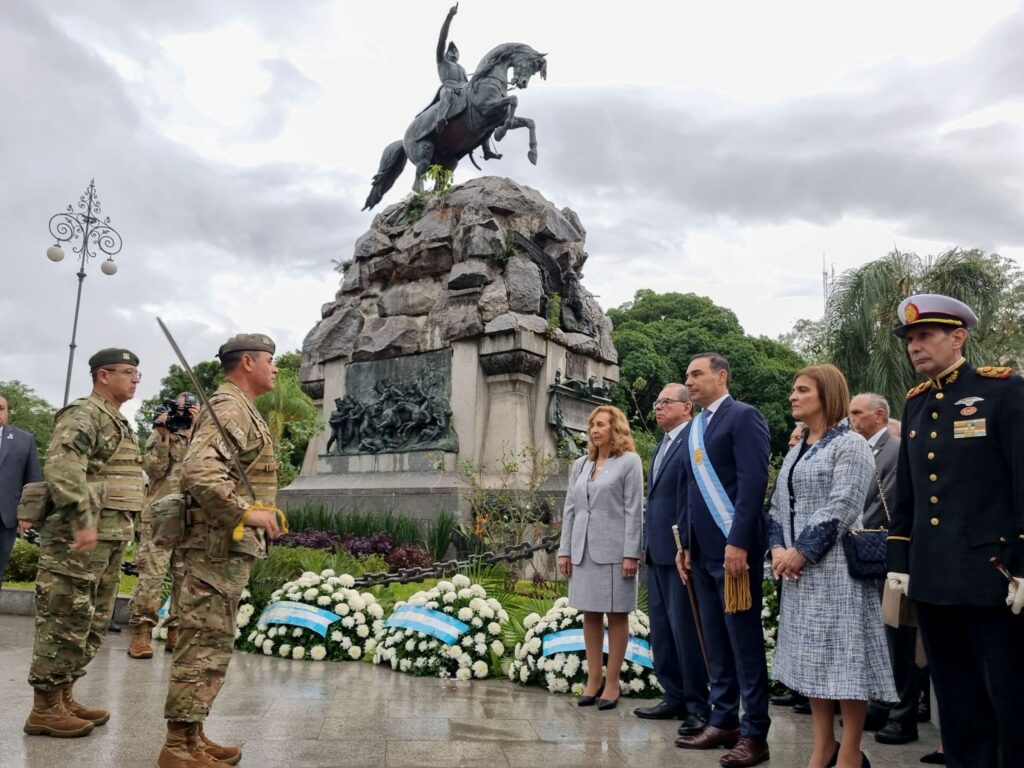 Al pie del monumento del General San Martín, las autoridades depositaron ofrendas florales, de las siguientes instituciones: Casa Paraguaya, Sociedad Italiana, Colegio de Abogados, Federación Empresarial de Corrientes, Asociación de la Producción, Industria, y Comercio, Federación Económica de Corrientes, Consejo Profesional de Ciencias Económicas, Sociedad Rural de Corrientes, Universidad Nacional del Nordeste, Servicio Penitenciario de la Provincia, Policía de la Provincia de Corrientes, Policía Federal, Policía Federal Aeroportuaria, Gendarmería Nacional, Prefectura Naval Argentina, Ejercito, Consejo Deliberante, la Municipalidad de Corrientes, el Poder Judicial, y el Gobierno de la Provincia de Corrientes.