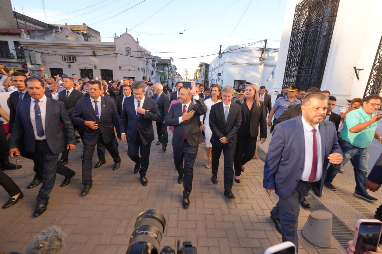 Tras un cuarto intermedio, la de Exterior, fueron los encargados de buscar al flamante gobernador y vicegobernador hasta su residencia y procedieron a acompañarlo hasta las escalinatas del Palacio Legislativo. Allí lo esperó la de Interior para invitarlo a tomar su lugar en el Estrado del Recinto junto a las autoridades presentes.