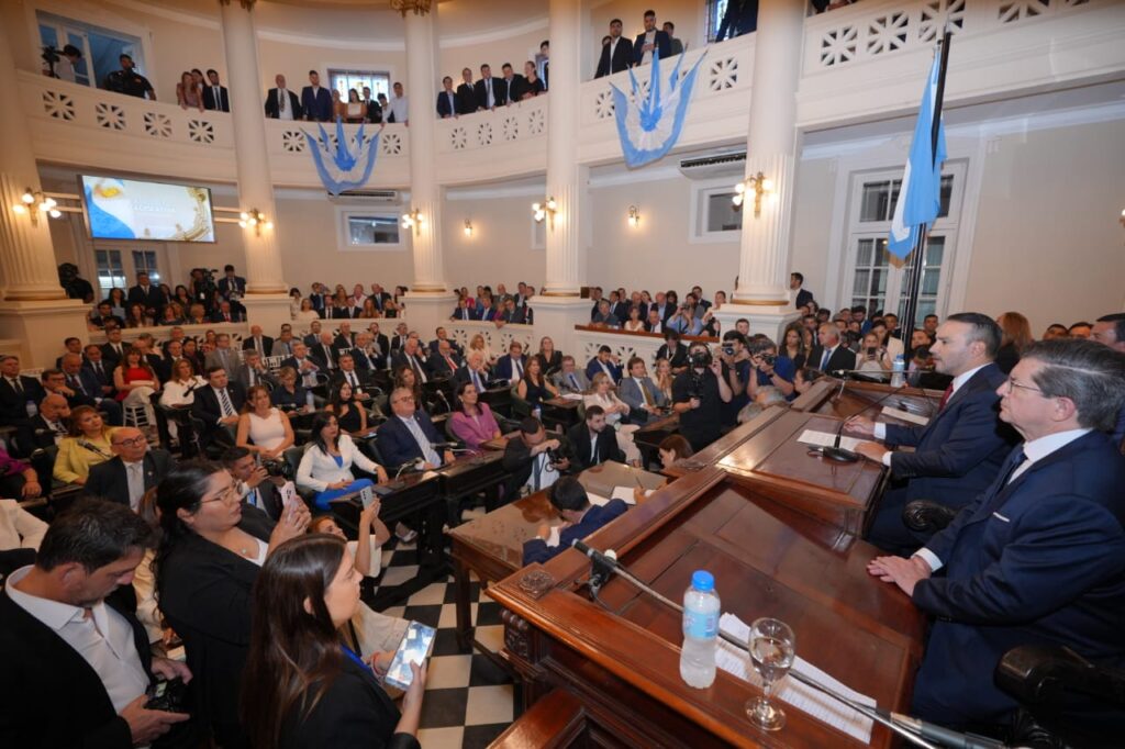 Este miércoles, en el palacio de la Legislatura, Juan Pablo Valdés juró como nuevo gobernador de Corrientes ante la Asamblea Legislativa, integrada por los senadores y diputados provinciales. Allí, pronunció luego su primer discurso como primer mandatario provincial, en el cual instó a “seguir transformando” el territorio correntino continuando el legado que dejó Gustavo Valdés en sus ocho años de gestión. Para ello, propuso a los legisladores iniciar “una relación fructífera” que permita cumplir los ejes de gestión que señaló en la ocasión: generar más empleo; modernización del Estado; transformación digital de la educación, la salud y la seguridad; trabajo con los intendentes y gestión centrada en las personas.