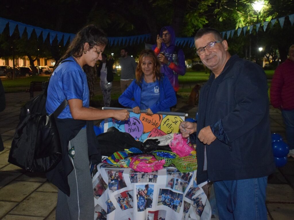 Por las condiciones de inestabilidad climática, persistentes lloviznas llevaron a que la jornada programada en plaza San Martín no se pudiera llevar adelante. Sí, en cambio, el equipo de la Coordinación de Discapacidad junto a las familias, profesionales del centro terapéutico y el acompañamiento de la concejal Susana Quiroz, participó de la iluminación de la iglesia Catedral con el color azul que simboliza al autismo.