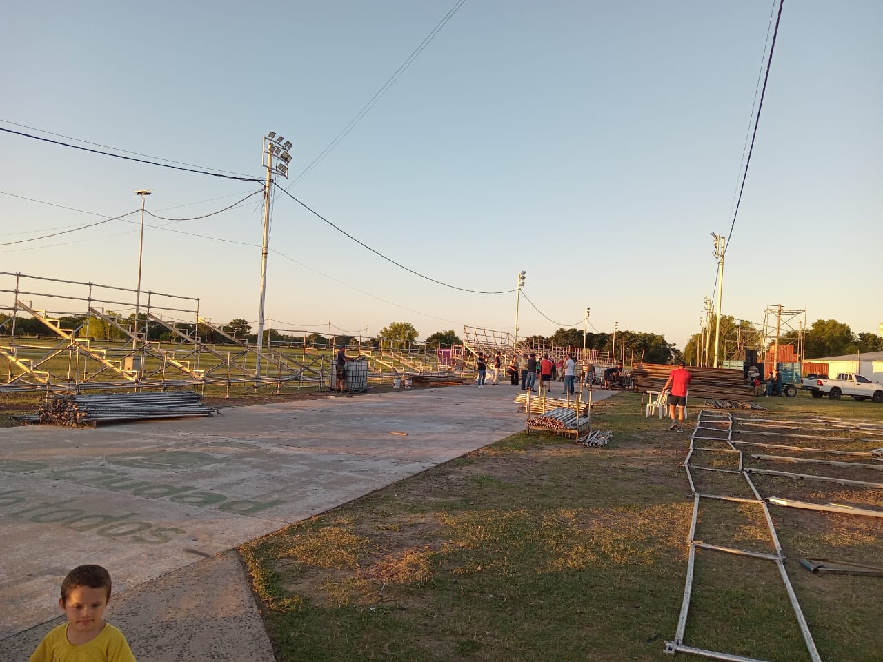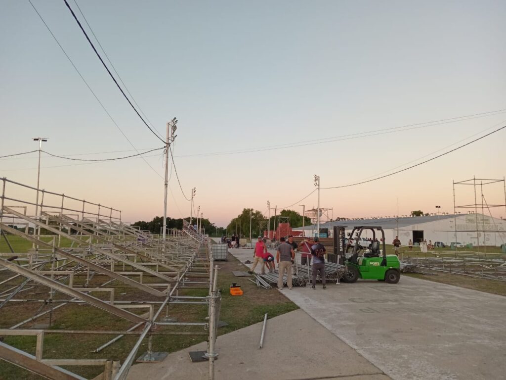 El Intendente Mariano Hormaechea, junto al Viceintendente Sebastián Mazzaro; Los Secretarios de Turismo Sebastián Candia De Biassio, de Modernización Andrés Zajarevich y el equipo que trabaja en la organización en la tarde del lunes recorrieron el espacio público destinado a la colocación de las tribunas, observando el avance a buen ritmo en la instalación de las referidas estructuras.