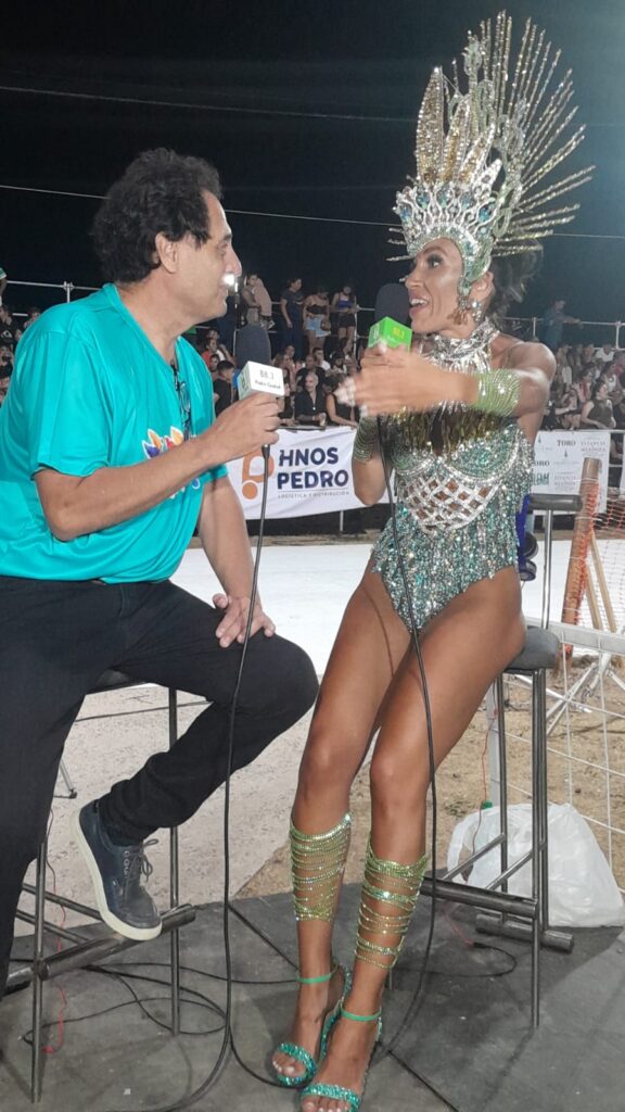 La soberana de Porambá, conocida como “La Orquídea”, fue la primera en brindar sus impresiones tras su paso por el Corsódromo. Con una sonrisa que reflejaba la satisfacción del deber cumplido, Quijano expresó: “La verdad, parecía que se iba a suspender, pero el tiempo acompañó. Agradezco al público por su aliento y por dar un marco colorido que nos llena de energía. Espero que las siguientes noches superen esta primera de debut”.