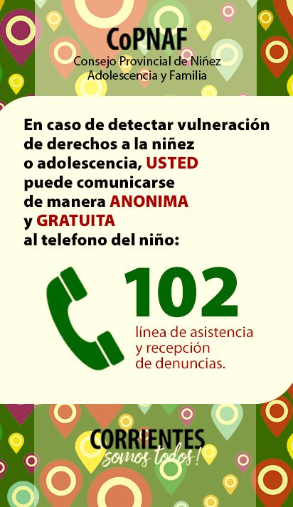 En el marco del funcionamiento de la línea 102 en la provincia de Corrientes es que se realiza este taller que tiene por objetivo la promoción y difusión de los derechos de los niños y adolescentes. Está destinado especialmente a los Centros de Promoción de Derechos (CPD) e instituciones con las que se trabajan en nuestra ciudad