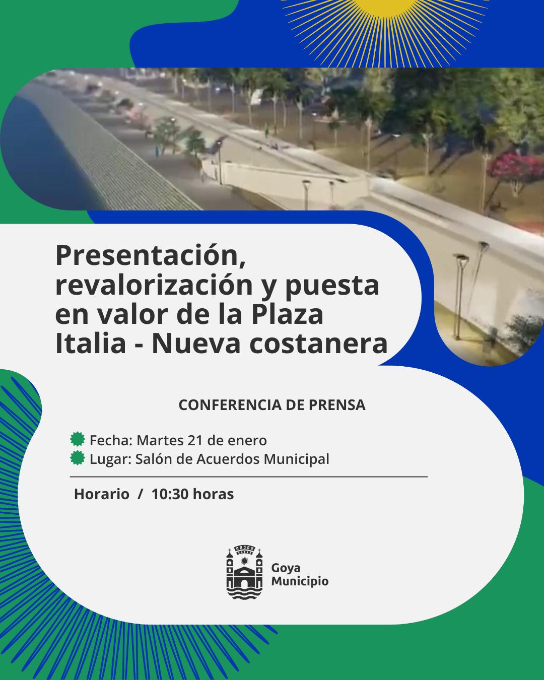 Se invita a Periodistas y Medios de Comunicación a participar de la presentación de dicho proyecto que promete revalorizar este significativo espacio como es Plaza Italia, tan caro al sentir de los goyanos.