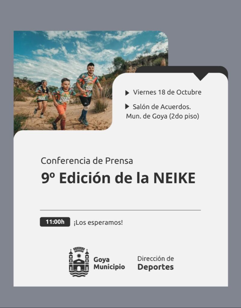 Este viernes 18 de octubre, a las 11 horas, el Salón de Acuerdos de la Municipalidad de Goya será el escenario de una Conferencia de Prensa en la que se presentará la Novena Edición de “La Néike”.