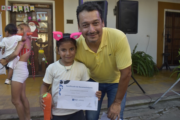 La Coordinadora de Discapacidad Liza Kamerichs, agradeció la presencia de los funcionarios, familiares, para destacar el trabajo desplegado por el equipo de la coordinación, de los asistentes al centro terapéutico, tras lo cual sostuvo: “Para que todo esto sea posible, el trabajo, el cierre hoy el reconocimiento a nuestro Intendente Mariano Hormaechea, nuestro cierre educativo y terapéutico, es simbólico porque el lunes continuamos y desde el 19 de diciembre iniciamos nuestra Colonia de Vacaciones, este equipo brega por la inclusión, por la salud, la educación, el esparcimiento, la escolaridad, para seguir por este camino de la inclusión, de la convivencia diaria debemos seguir así junto a las familias que confían en este equipo, cerramos un ciclo, con el compromiso de continuar trabajando, aprendiendo, creciendo, por eso simplemente gracias.”