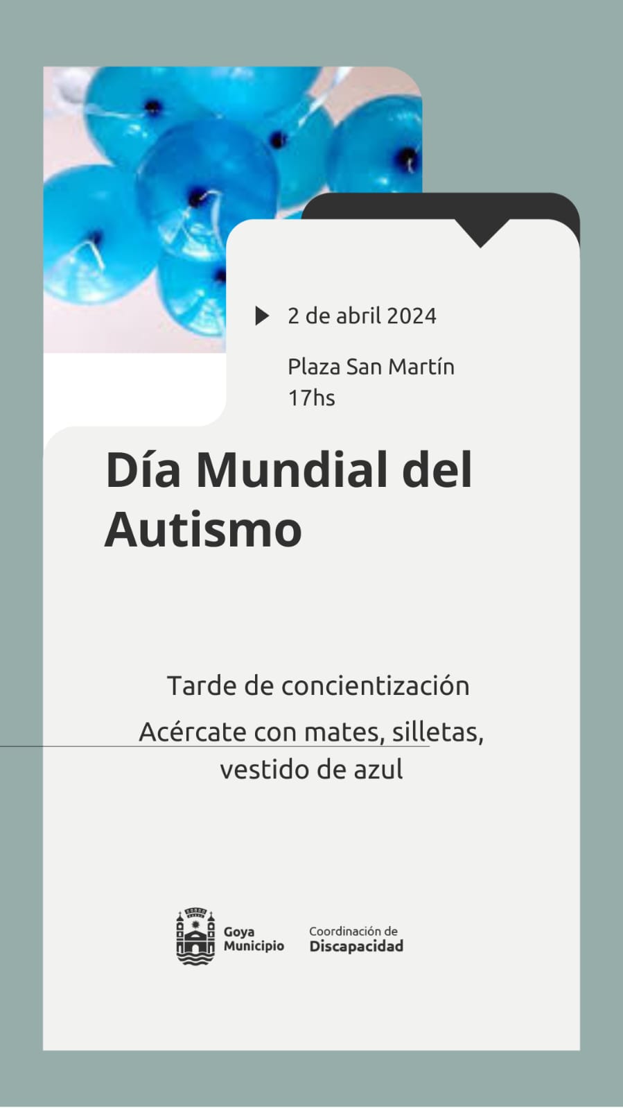 La Municipalidad de Goya por medio de la Coordinación de Discapacidad invita a la tarde de concientización a concretarse el próximo 2 de abril desde las 17 horas en plaza San Martín.