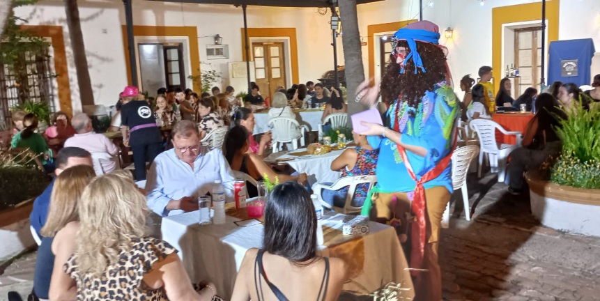 Durante el desarrollo del programa dispuesto para cerrar la temporada, en esa combinación de arte, cultura y gastronomía los espectadores tuvieron la oportunidad de interactuar con esos “personajes” como ser la “curandera” oriunda del Paraguay que ofrecía a los presentes sus “medicinas naturales” a base de “yuyos” para curar todos los males incluido el de la vista mensual de las mujeres, o la Licenciada que hizo su glamorosa presentación acaparando la atención de los espectadores, quienes celebraron cada ocurrencia, o en un momento una suerte de “astrologa” tirando las cartas para predecir el futuro, en esa continuidad de variación de matices teatrales también es oportuno destacar que se pudo observar la actuación sobre “fragmentos” seleccionados de obras para ir logrando la combinación buscada, en definitiva una noche de excelencia en la propuesta presentada y en la adhesión recibida por parte de los espectadores que colmaron el Patio Pai Julián Zini.