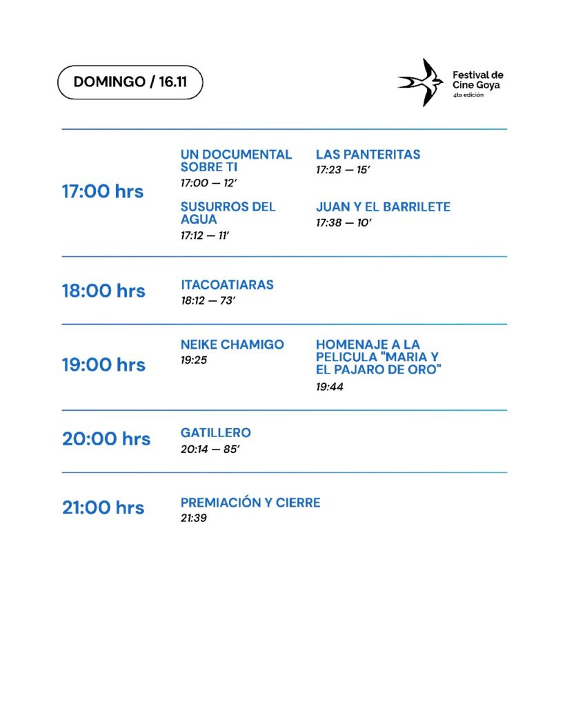 El Teatro Municipal será el escenario durante los días viernes 14, sábado 15 y domingo 16 de noviembre de las proyecciones de cortometrajes, largometrajes y documentales que forman parte de la competencia del Festival de Cine Goya. El otrora Cine Solari servirá de ámbito para que los cinéfilos tengan esta cita con las películas de realizadores del país y del extranjero en la 4ª temporada de este evento.