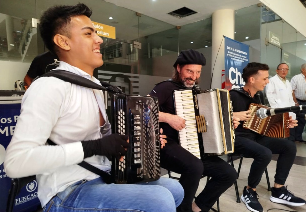 En la mañana de este martes, el Chango Spasiuk acompañado de los jóvenes acordeonistas, Emiliano López y Enzo De Martínez, hizo vibrar a los presentes con un repertorio que invitó al baile y los continuos aplausos y sapukai.