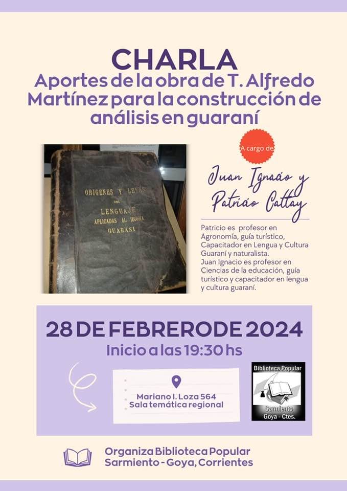 El Director de Cultura señaló que el libro de Martínez “es el utilizado como base para el curso de guaraní que dará el profesor Patricio Cattay” próximamente en Casa de la Cultura.