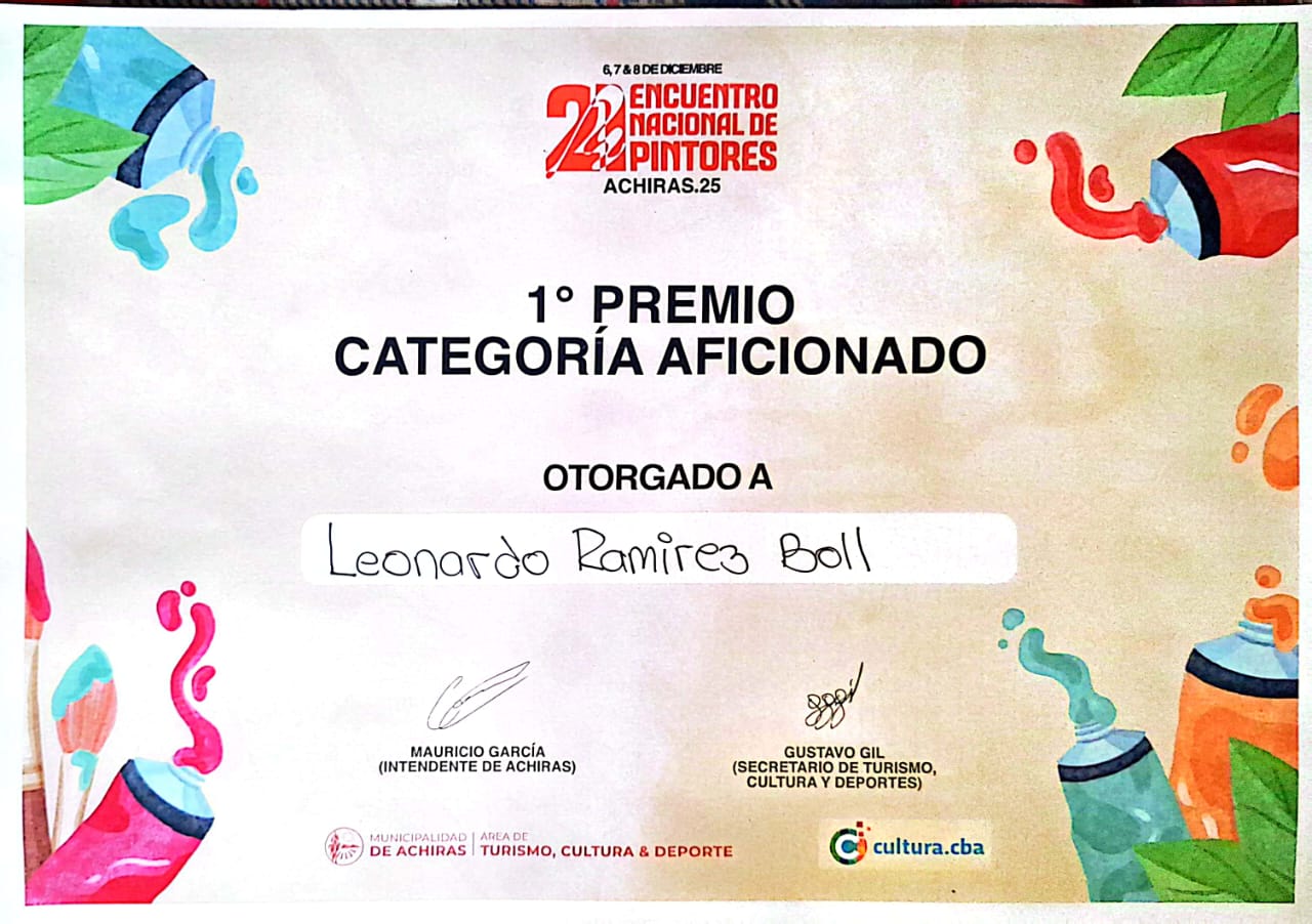 El artista goyano Leonardo Ramírez Boll obtuvo el 1° premio en la categoría Aficionado, imponiéndose entre varios participantes y confirmando el nivel creciente del arte paisajista de la región. Su obra logró captar la atención del jurado por su técnica y sensibilidad, proyectando nuevamente a Goya al escenario nacional.