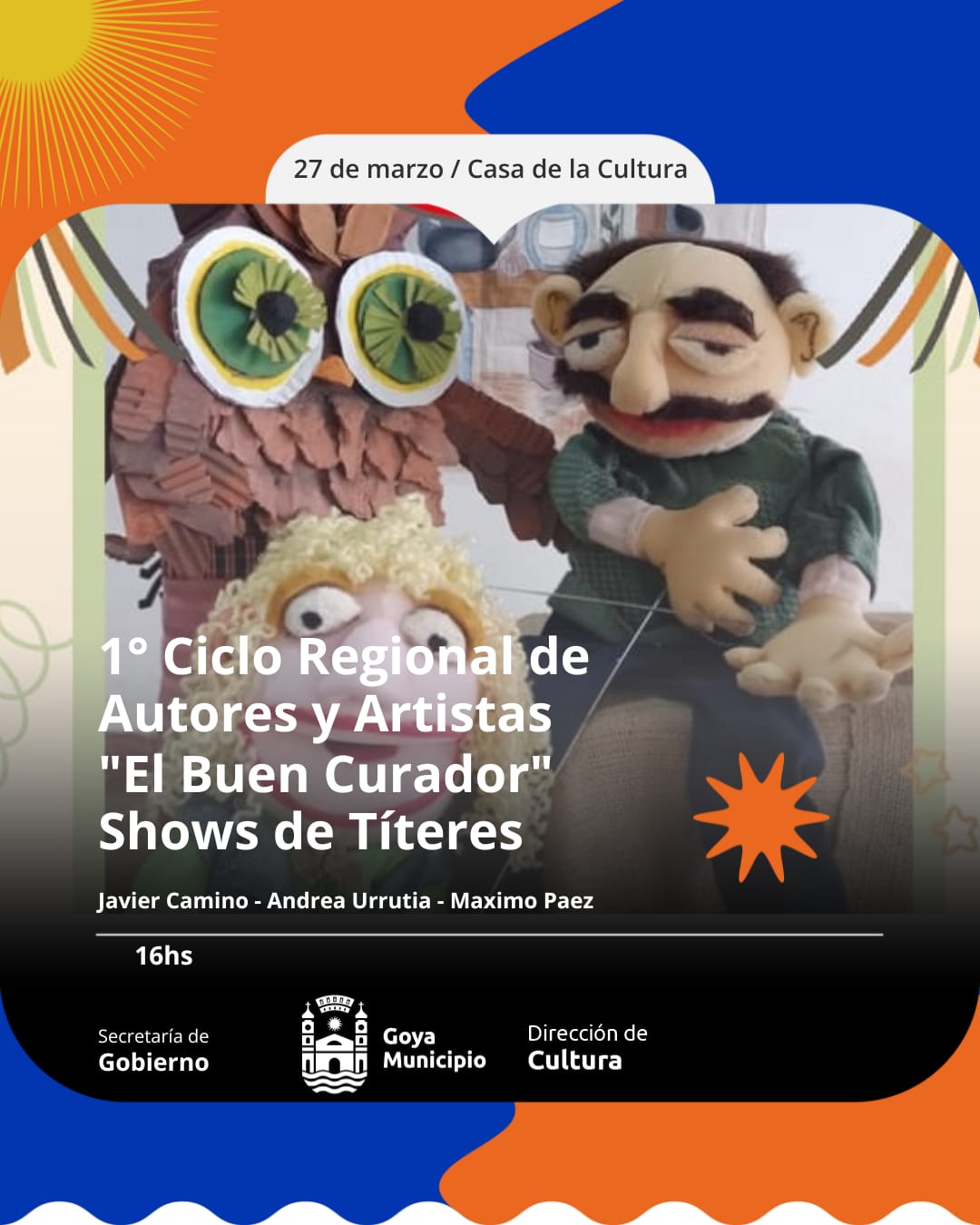 16 hs “El Buen Curador” Javier Camino Andrea Urrutia – Títeres- Esc. Teatro