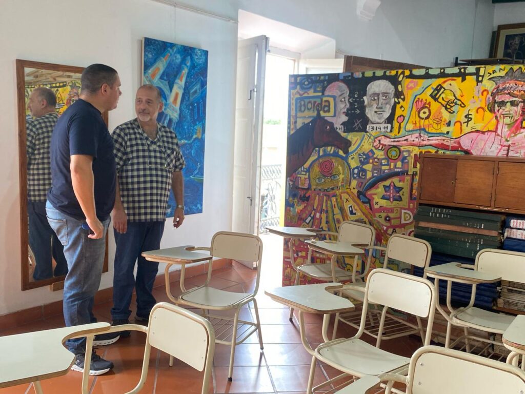 El funcionario asimismo conversó con los artistas plásticos mientras realizaban su “trabajo” de creación y participó en la premiación del campeonato de ajedrez
