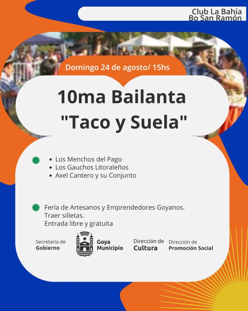 Este domingo 24 de agosto, a partir de las 15 horas, el Club La Bahía del barrio San Ramón se convertirá en punto de encuentro de la música, el baile y la tradición con la realización de la 10ª Bailanta “Taco y Suela”.
