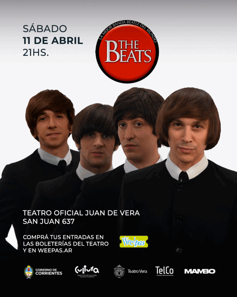 The Beats, la banda que representa fielmente a The Beatles, vuelve a Corrientes con un espectáculo imperdible en el escenario del Teatro Oficial Juan de Vera el próximo sábado 11 de abril a las 21.