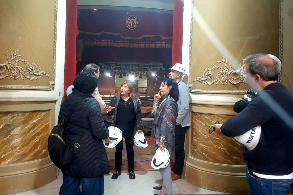 La presidente del Instituto de Cultura estuvo acompañada por los arquitectos Francisco Benítez y María Marta Vizcaíno, y por parte del ministerio de Obras y Servicios Públicos, formaron parte del recorrido: José Luis Matzner, director de Planificación y Obras; Arq. José R. Villarroel, jefe de Estudios y Proyectos (coordinador a cargo de las obras); Arq. Juan Casaro (inspector de obras); Maximiliano Danuzzo, titular de la empresa Rentamaq; Iris Manzolillo, subjefa de la Dirección de Planificación y Obras, y el Ing. Luis Monzón Pando.