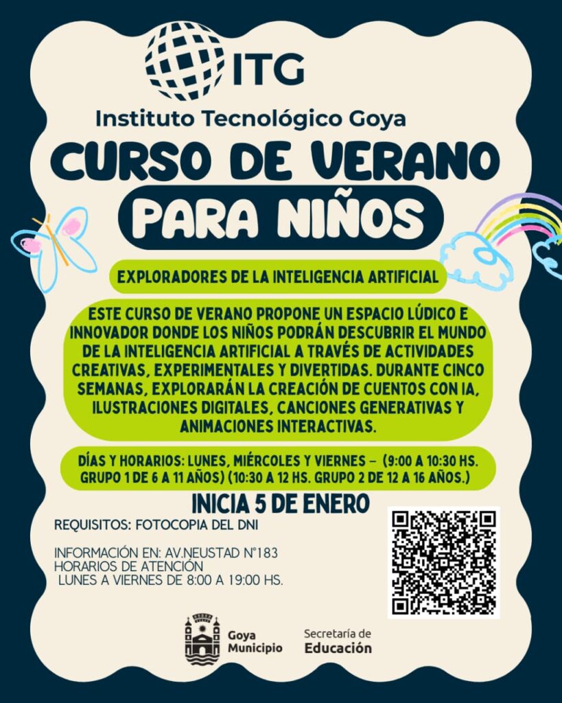 La Municipalidad de Goya, la Secretaría de Educación y el Instituto Tecnológico Goya ITG inician sus cursos de verano para niños. La iniciativa dará comienzo este próximo 5 de enero con imperdibles cursos sobre tecnología.