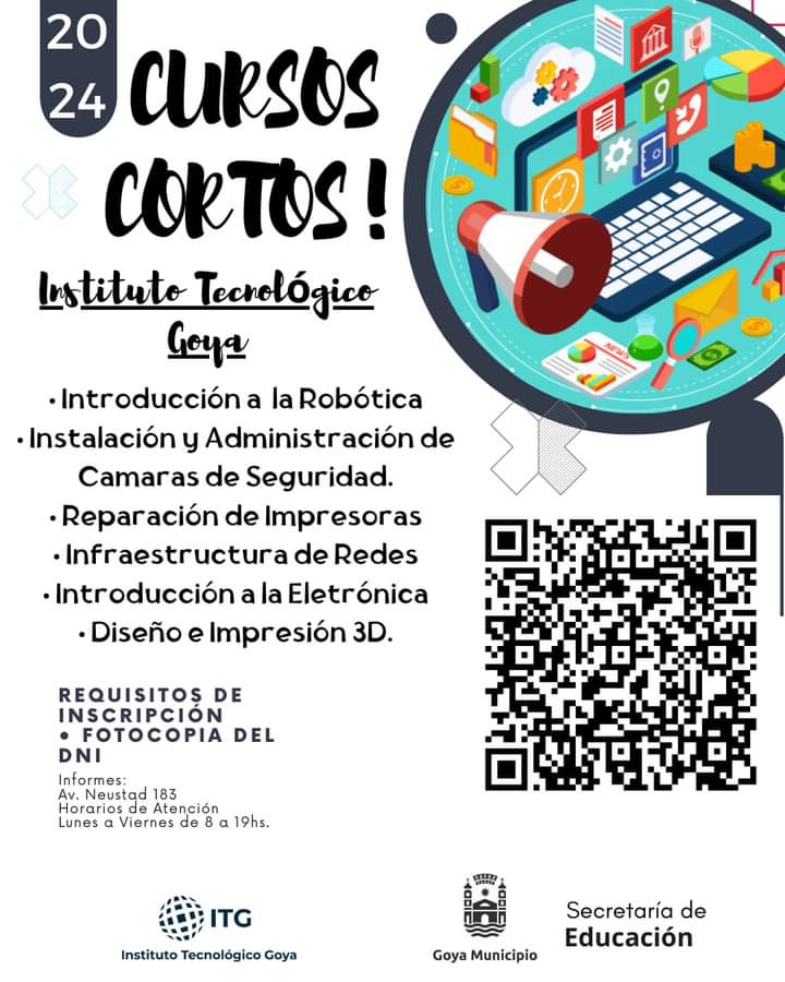 El lunes 11 de marzo, la UTN dio inicio al ciclo lectivo con las tecnicaturas en Programador Universitario y Mecatrónica, demostrando un sólido apoyo a la educación y la tecnología por parte del intendente Mariano Hormaechea. Sin embargo, además de estas tecnicaturas, el Instituto Tecnológico Goya (ITG) ofrecerá una serie de cursos gratuitos para aquellos interesados en ampliar sus conocimientos en diversas áreas.Los cursos que se dictarán en el ITG son los siguientes: