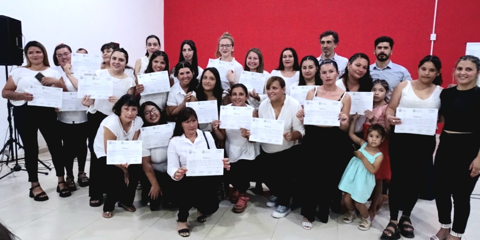 Esto es un reconocimiento al gran primer paso, de inscribirse en la capacitación, despierta el interés nuestras ofertas se llena una vez presentada, muchas veces no siguen, para nosotros Uds., son una motivación porque han proseguido desde el primer paso cuando se anotaron, este es el inicio de un nuevo camino, queremos ayudarlo al preparado de su currículum, estamos trayendo a la Oficina de Empleo después de una década el Programa de Empleo Independiente permite a los que tienen oficios o emprendedores acceder, continuamos con la capacitación en Negocio y Gestión para obtener un ANR un monto de dinero de un monto de 390 Mil Pesos, para desarrollar el emprendimiento, nuestro objetivo será seleccionar a emprendedores entre los que terminan estos cursos de oficios y deseen desarrollarse en esta área, felicitaciones, para nosotros es un comienzo anhelamos seguir viéndonos en la Oficina de Empleo, gracias y Felices Fiestas.”
