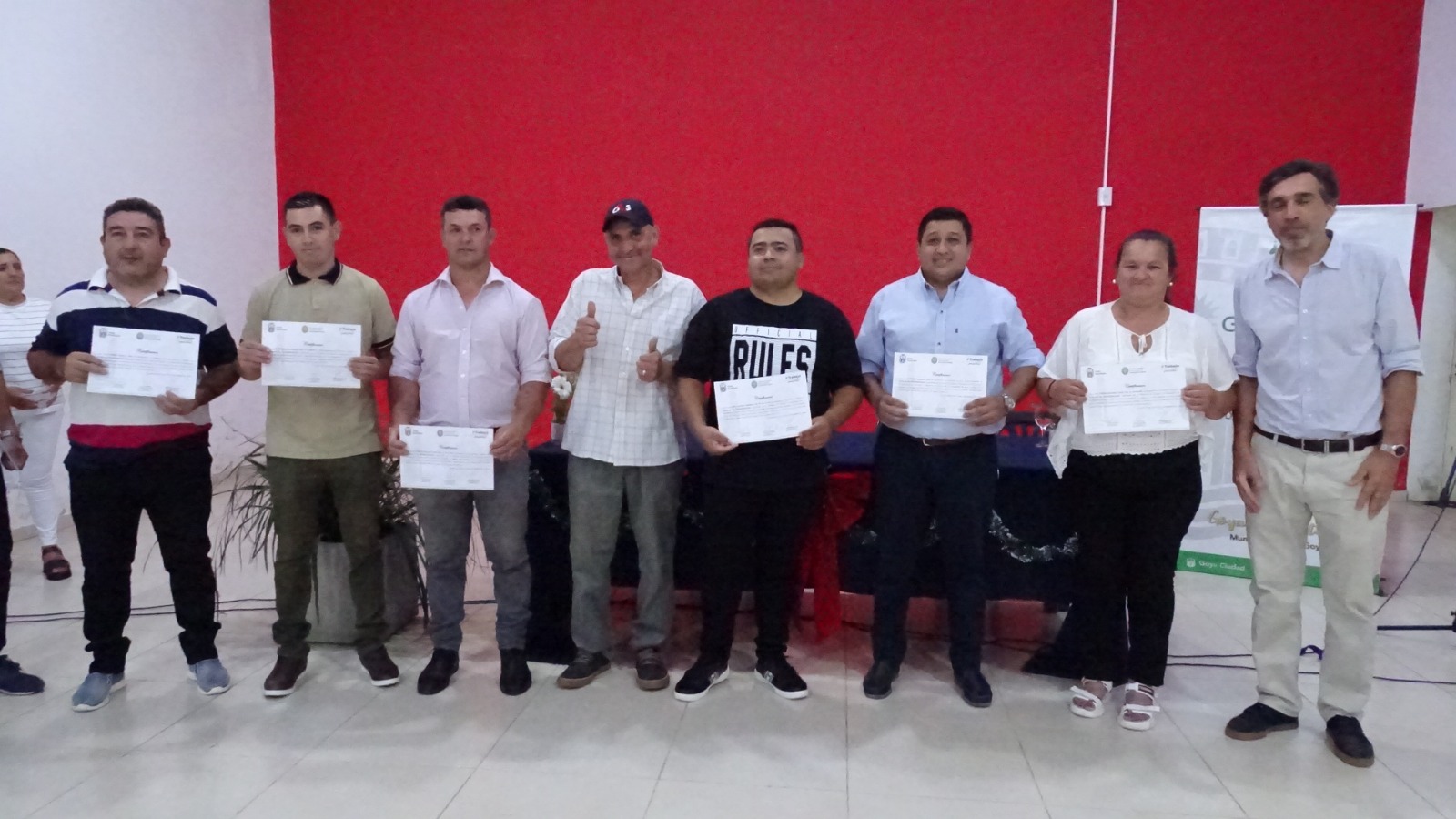 El Secretario de Modernización Luciano Rolon, agradeció por la movilización a la ceremonia, por la buena voluntad para participar de la ceremonia, reconociendo el trabajo del equipo formador en la capacitación, para sostener: “Queremos facilitar la inserción laboral, generar oportunidades para desarrollarse económicamente a nuestros ciudadanos, quiero transmitir el saludo del Intendente Marianao Hormaechea, que por razones de agenda no ha podido estar presente (Estuvo en Corrientes en la apertura de sobre licitación obras de la Costanera), envía sus felicitaciones.