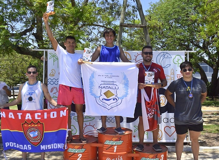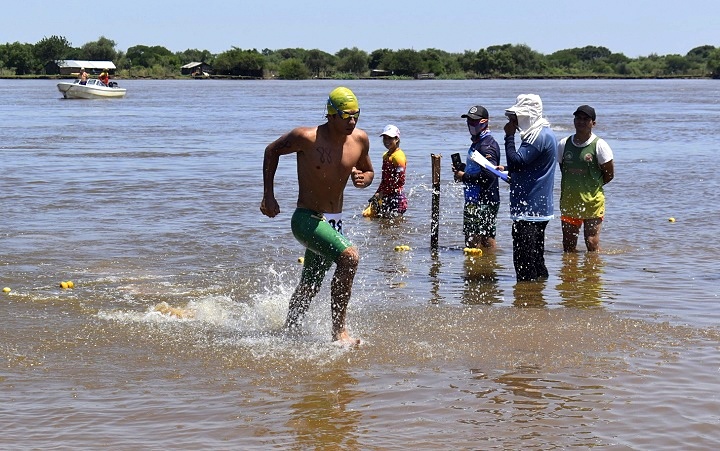 Los nadadores fueron transportados desde el Inga, en móviles y colectivos hasta el punto de partida y pasadas las 10 y 30 se largó la primera distancia los 3000 metros con 55 nadadores en el Riacho Goya, para seguir con la distancia de 450 metros en un número superior a las 45 y cerró la distancia de 1500 metros, la más numerosa con 59 participantes, lo que llevó a la organización largar en dos grupos el masculino y femenino.