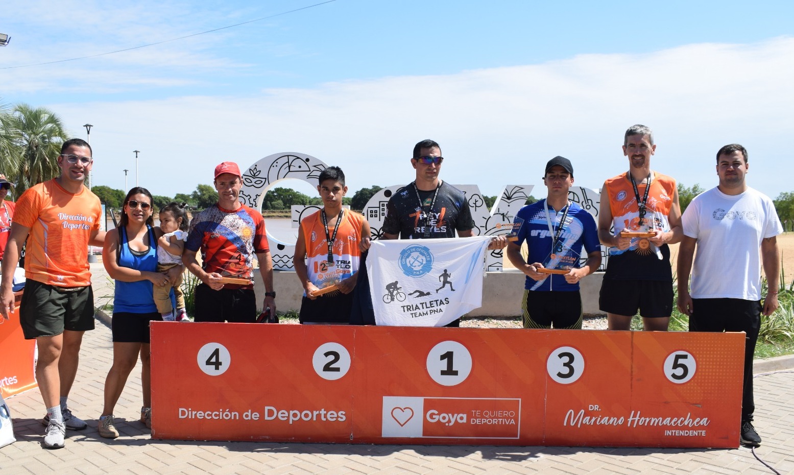 Todos los triatletas a medida que llegaban a la meta, marcando el final de su participación recibieron su medalla finisher, como parte de la muestra de ser parte del 16º Triatlón de la Ciudad de Goya
