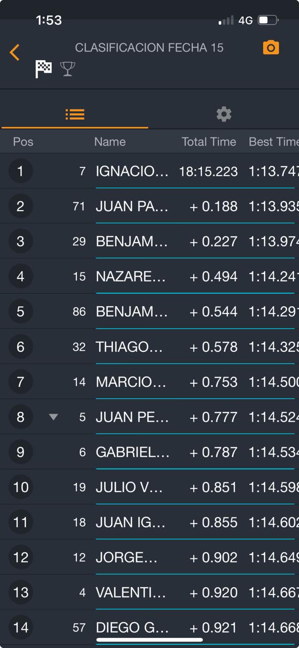 Vale recordar que la fecha concluye este domingo, tras la carrera programada para este día sábado ante un toque en plena carrera no pudo mantener la clasificación, marginando al 2º puesto, lo que permitió al esquinense quedarse con la carrera, y tener actualmente 200 puntos.