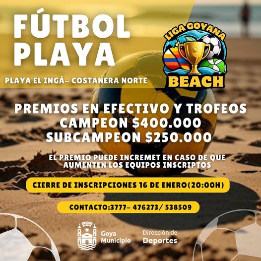 Una oportunidad para inscribir a tu equipo, no te quedes afuera del Torneo Beach Fútbol.