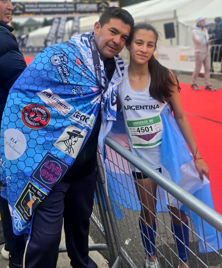 El orgullo de la representante argentina, la goyana Brenda Insaurralde en su incursión por los Pirineos