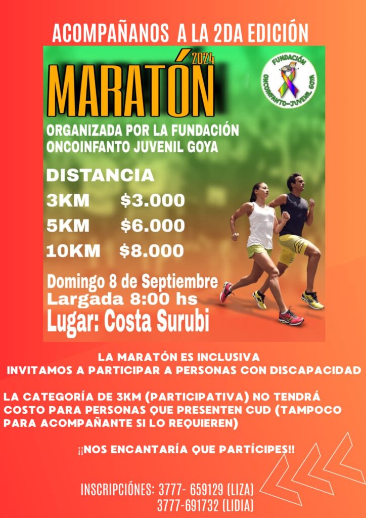 Así lo aseguró, el coordinador de la Escuela Municipal, profesor German Sánchez referido a la Maratón Solidaria, Segunda Edicion de la Carrera organizada por la Fundación Onco Infanto Juvenil de Goya. Se realizará este domingo 8 en predio Costa Surubí y el team de esta institución municipal va a estar presente acompañando.