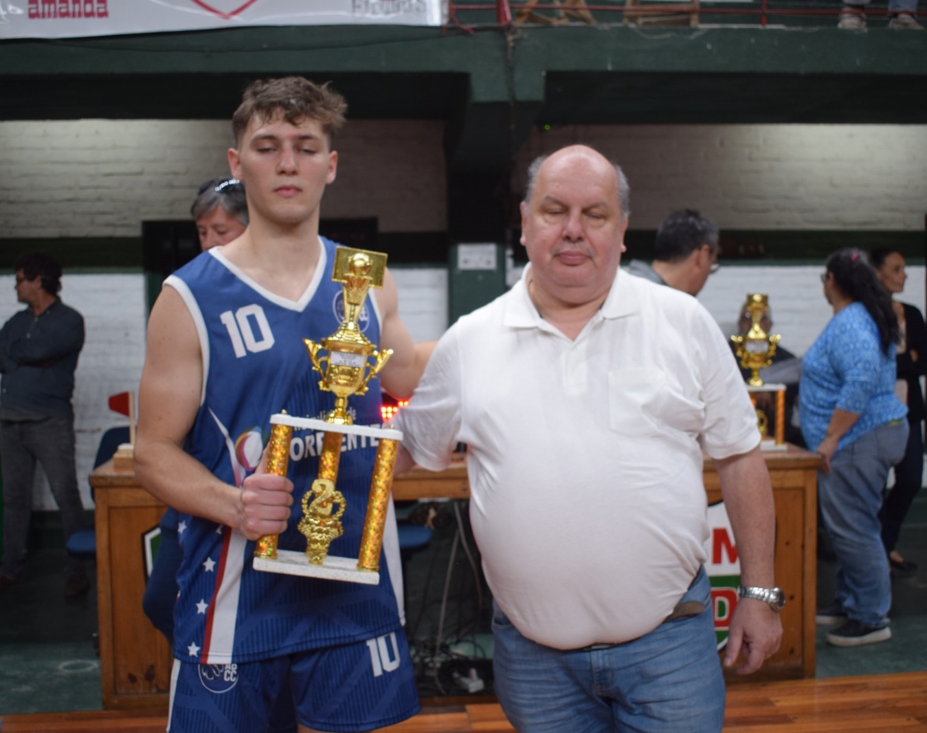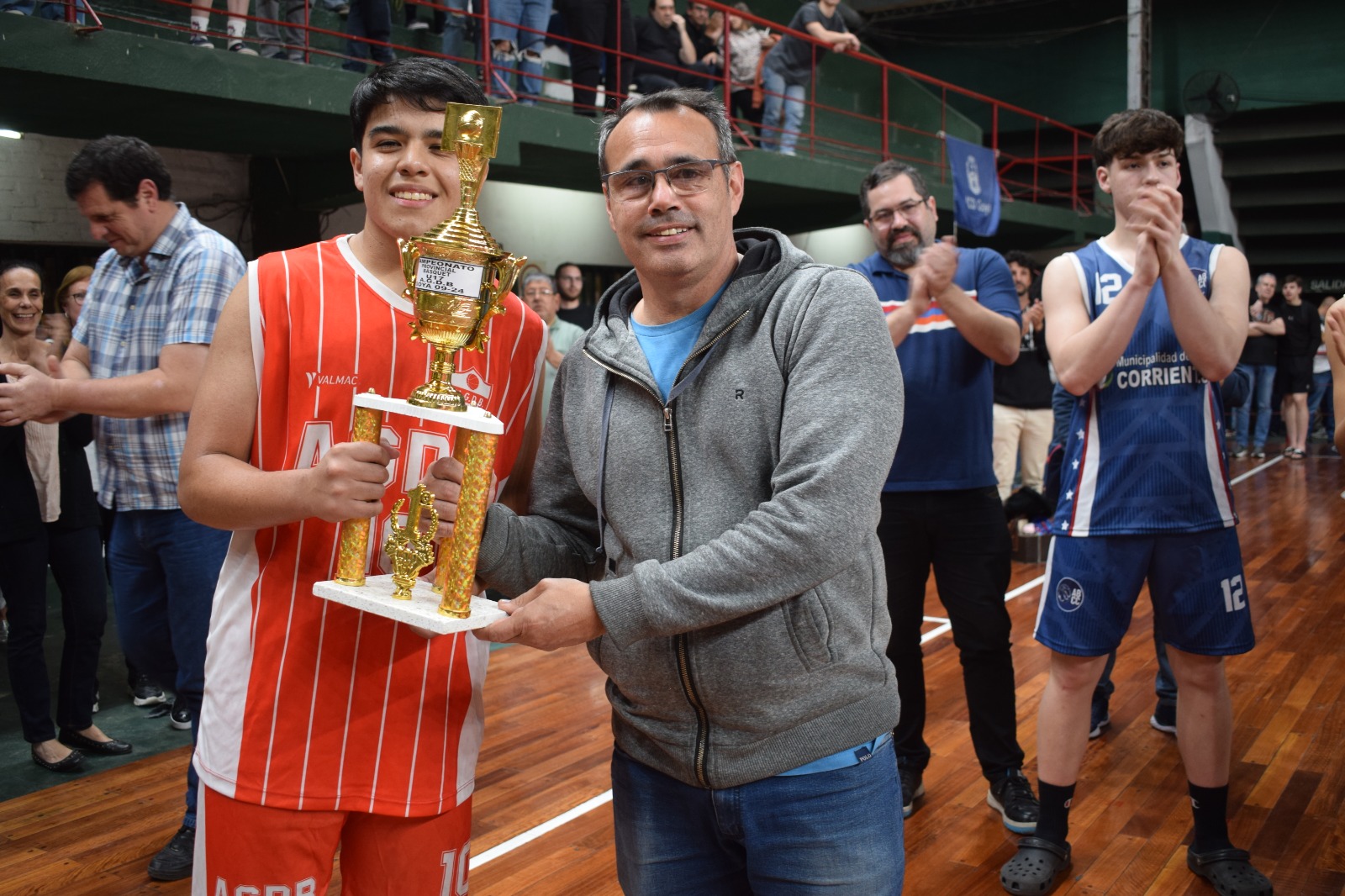 El Presidente de la Federación de Básquetbol de Corrientes Marcelo Quagliozzi entregó el trofeo al segundo en el torneo la selección capitalina, lo propio hizo el presidente de la Asociación Goyana de Basquetbol Hernán Laprovitta al plantel campeón la selección goyana.
